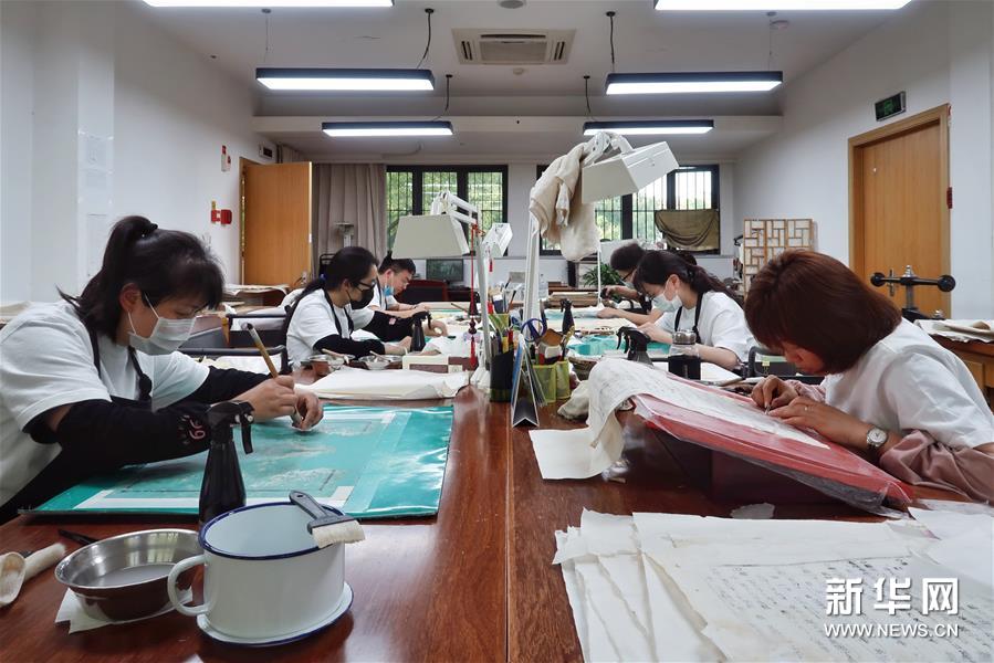 天一閣藏品修復(fù)部目前有修復(fù)師14人,每年約修復(fù)古籍14000余頁(yè)。據(jù)介紹,修復(fù)一冊(cè)古籍通常需要1至2個(gè)月,有的甚至需要1年以上。 新華社記者 鄭夢(mèng)雨 攝