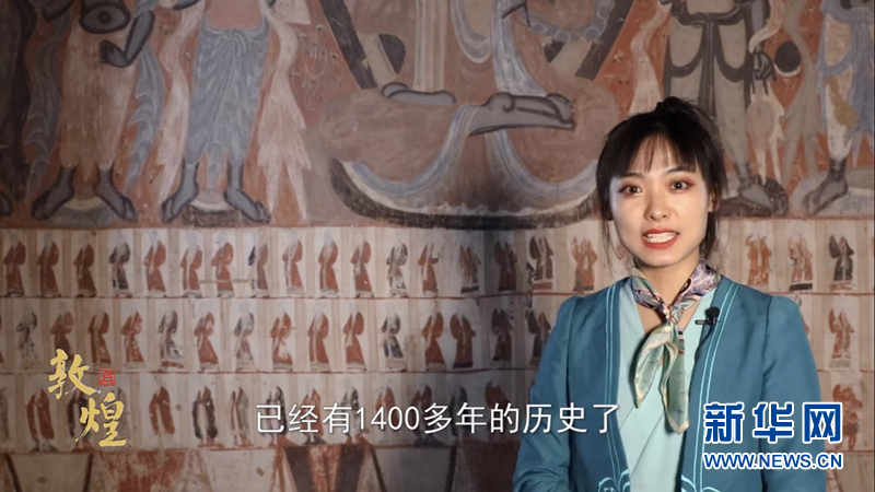 化妝是引子,講述敦煌故事才是關鍵。班銳進入莫高窟第428窟,講解起1400多年前的壁畫。