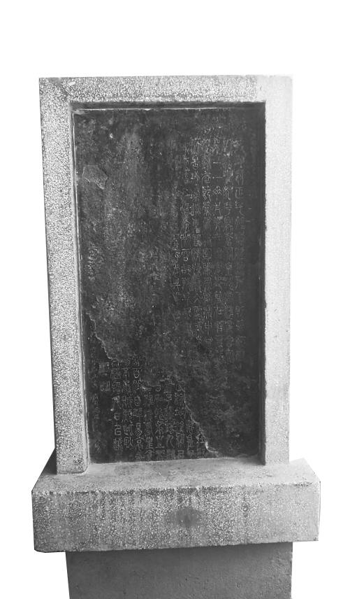 和文化宮的其他幾方大碑比起來(lái),這方石碑不算大,碑面黑黑的,這是人們制作拓片時(shí)留下了墨。碑面風(fēng)化剝落得比較嚴(yán)重,只剩下右上方和左下方兩部分,風(fēng)化剝落了大部分,能看清楚開頭和結(jié)尾。成行的字,只有最邊上的落款。
