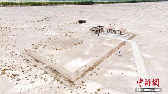 嘉峪關新城魏晉墓群六號墓是一座典型的三室墓,由前、中、后三個墓室組成。圖為7月中旬,六號墓航拍圖。高展 攝