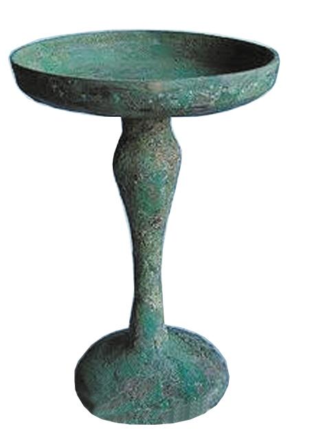 中國古代的照明工具,除掉最原始的火把,最早的是油燈而不是蠟燭,有關(guān)蠟燭的記載是漢代才有的。既然要用油燈,古人用什么器皿來盛放燈油和燈芯呢?人們找來找去,一種名叫“豆”的器皿脫穎而出。“豆”本為上古時(shí)代的一種盛食器,其上為圓盞盤,中間為或長或短的直柄,最下為喇叭或圓足形底座。簡單地說,“豆”的形狀就像高腳盤,一般用陶制,也有青銅或木制的,青銅制的用作祭祀禮器。“豆”的造型,完全符合人們對(duì)燈具的基本需求——既有能裝油和燈芯的淺淺的容器,又有方便移動(dòng)的把手。于是,人們就在“豆”的基礎(chǔ)上稍加修改,用陶土燒制出了最初的高腳燈具。