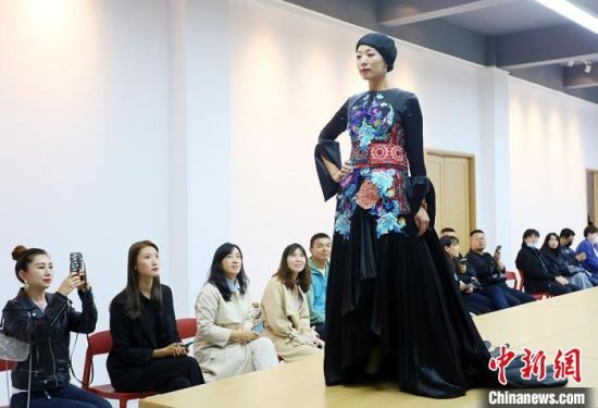 9月26日,甘肅東鄉(xiāng)繡娘身著帶有“東鄉(xiāng)刺繡”元素的民族服飾T臺走秀?!「哒埂z