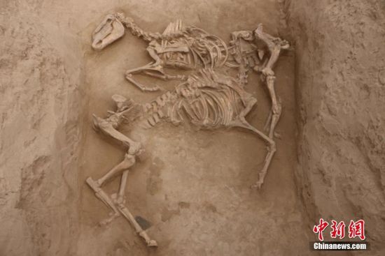 12月14日,甘肅省文物局發(fā)布該省武威地區(qū)唐代吐谷渾王族墓葬群最新考古研究成果。圖為長(zhǎng)嶺M1墓道殉馬。 中新社發(fā) 甘肅省文物局 供圖