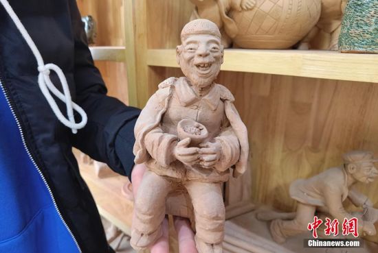 圖為泥塑作品展現(xiàn)人們娛樂場景。 劉玉桃 攝