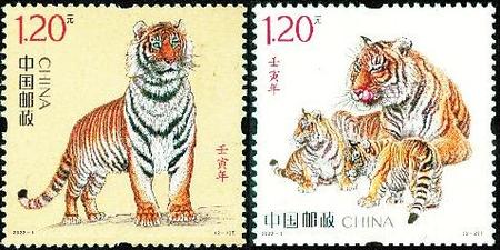 2022年是農(nóng)歷壬寅年,即“虎”年,中國郵政于1月5日發(fā)行《壬寅年》特種郵票,全套2枚。這是中國郵政發(fā)行的第四輪生肖郵票的第七套?;⒛晟む]票仍然延續(xù)了第四輪生肖郵票的“家國”理念:兩枚郵票分別展示了國家的期許、家庭的企盼,組合而成濃濃的新春祝福。