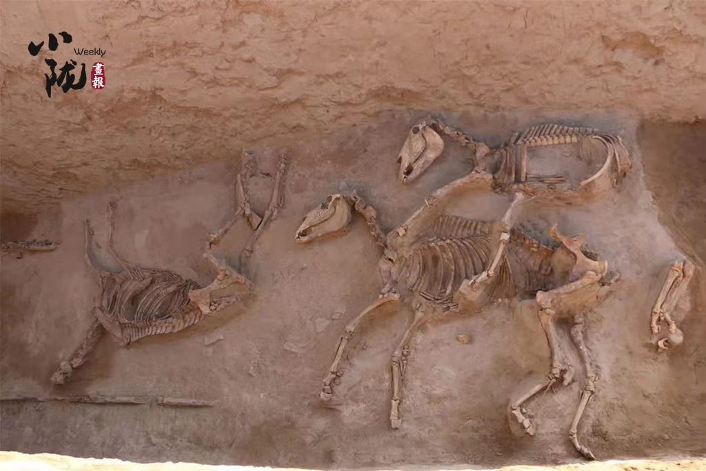 墓道內(nèi)均有整馬殉葬,1-3匹不等,亦見(jiàn)有燒殉的羊骨、牛骨等。墓室內(nèi)出土有漆、木、陶、石、革及各類(lèi)金屬器等隨葬品290余件,以殘漆木器居多,部分漆木器上有彩繪,并貼有金、銀箔,做工精美,裝飾華麗。