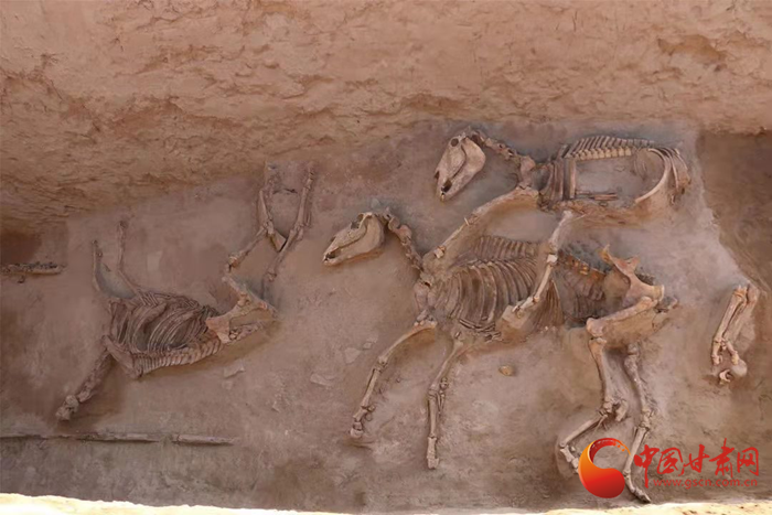 2021年,考古項目組對新發(fā)現(xiàn)的天??h祁連鎮(zhèn)長嶺-馬場灘區(qū)3座墓葬進行了考古發(fā)掘,發(fā)掘面積600平方米。3座墓葬均為帶斜坡墓道的單室磚室墓,其中馬場灘M1還附帶一側(cè)室,甚為獨特。墓道內(nèi)均殉有整馬,1-3匹不等,墓室均遭盜掘,頂部坍塌,北側(cè)設(shè)磚砌棺床,共出土各類文物290余件。