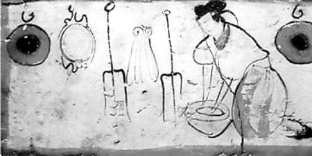 糧食、蔬菜品種與前代相比沒有大的變化,仍是漢地人的主要經(jīng)濟(jì)和衣食來(lái)源。烹飪方法,這一時(shí)期出現(xiàn)了面粉發(fā)酵技術(shù)。北魏賈思勰介紹發(fā)面技術(shù)說(shuō):“面一石,白米七八升作粥,以白酒六七升酵中,著火上,酒魚眼沸,絞去滓,以和面,面起可作”(《齊民要術(shù)》卷9)。把北魏時(shí)期的容量數(shù)換算成今天的市斤,上段話的意思就是,用五十多斤面粉,五六斤白米做粥,再用四五斤白酒(甜米酒)做酵母,將酒架火上燒至發(fā)出魚眼樣的小泡后,濾去酒渣,加入面粥中發(fā)酵,等面發(fā)起后就可以做餅了。這是一項(xiàng)歷史性的烹飪技術(shù)。從發(fā)面的數(shù)量看,一次發(fā)這樣多面的家庭,至少有三五十口人,顯然是當(dāng)時(shí)世家大族的人口規(guī)模。世族如此,普通民眾也應(yīng)很快就學(xué)習(xí)掌握了發(fā)面技術(shù)。