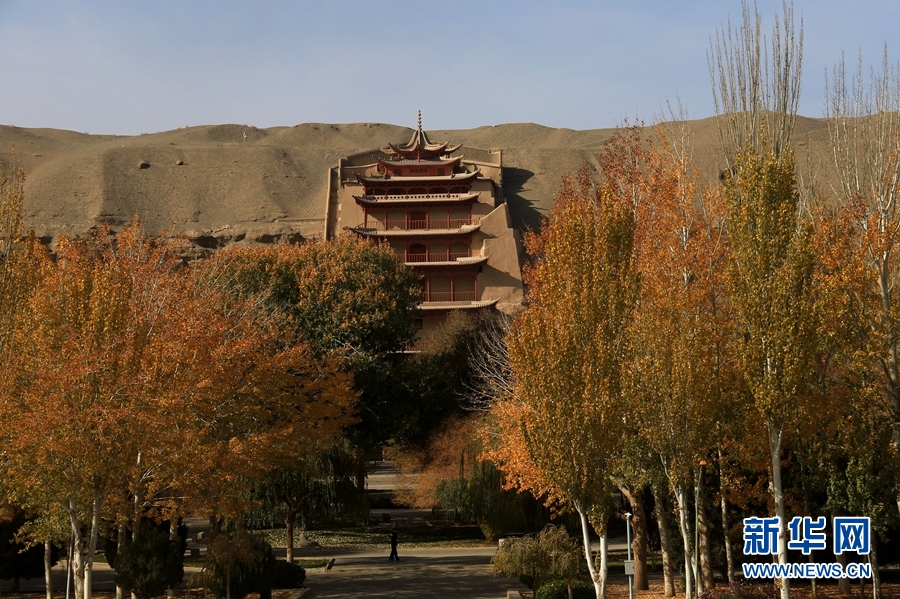 深秋時(shí)節(jié),世界文化遺產(chǎn)甘肅省敦煌市莫高窟盡染秋色,景色迷人,美不勝收。