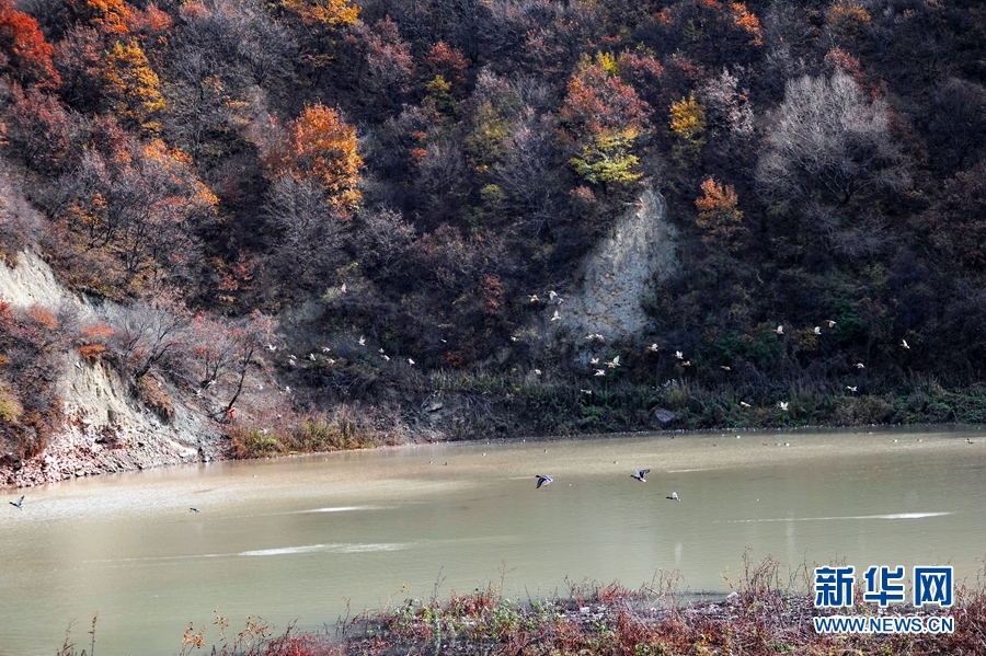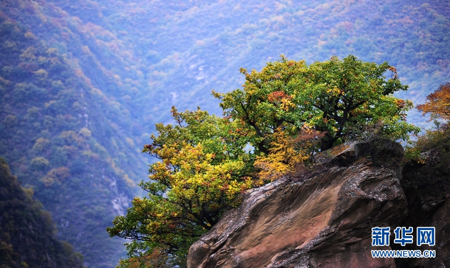 近日,甘肅省平?jīng)鍪谐缧趴h五龍山草木色彩繽紛,成為一道如詩如畫的美麗風(fēng)景。(文字:王紅剛 拍攝:張志平)