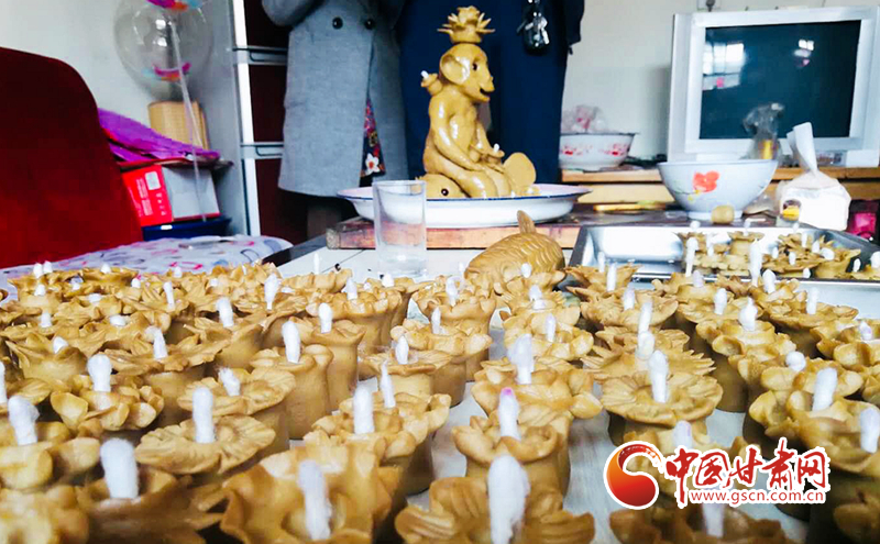 每年一踏進(jìn)臘月的大門,所有當(dāng)年嫁出女兒的人家便將已碾成的“酒谷子”磨成面,等到正月十五一大早,將連夜發(fā)酵好的酒谷面用旺火蒸熟,并請來家門里擅長做猴燈的幾個(gè)妯娌幫忙做燈、捏猴。