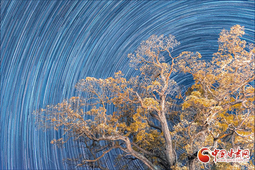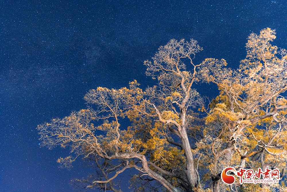 古槐樹夏季枝繁葉茂,身姿卓越;冬季樹葉凋落,顯露出它曠古的肌膚和清晰的骨骼,蒼遠巨偉。天氣晴好的時候,可以拍到星空與古槐生命與時空的結(jié)合,感嘆生命的頑強與奇妙。