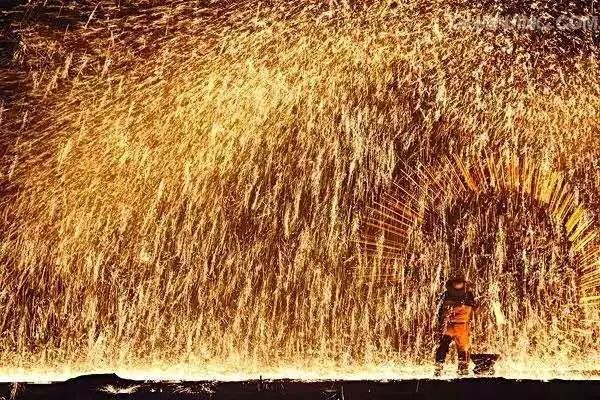 傳統(tǒng)“打鐵花”以老風(fēng)匣、小融鐵爐、耐火罐、陶勺、耐火鍋、木板等為工具;以生鐵、焦炭、木屑為原料,利用木板擊打熾熱的鐵液和木屑混合物,打出一朵朵千姿百態(tài)、爭(zhēng)奇斗艷、精彩紛呈、絢麗奪目的“鐵花”,由于其顏色吉祥,寓意美好,因此,農(nóng)村都喜歡通過“打鐵花”來祈盼來年風(fēng)調(diào)雨順,國(guó)泰民安。