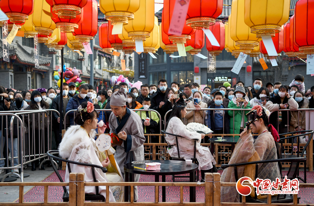 2月5日,甘肅省蘭州市七里河區(qū)蘭州老街,游人如織,格外熱鬧,人們賞舞獅、看表演 、猜燈謎、品美食,處處洋溢著熱騰騰的“煙火氣”。春節(jié)期間,蘭州老街開啟多場(chǎng)景布局、多業(yè)態(tài)融合、沉浸式消費(fèi)等新春購物盛宴,吸引大量市民游客前來消費(fèi)游玩,消費(fèi)旺文旅熱,老街成為城市商業(yè)、文化和旅游的地標(biāo)。