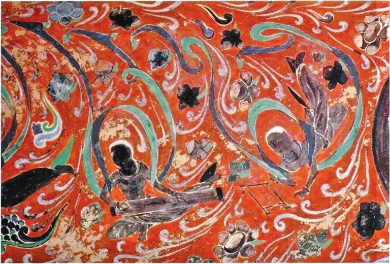 公元421一433年間,北涼占據(jù)了敦煌,莫高窟也第一次正式開始大規(guī)模的營造。這次營造活動的內(nèi)容,包括268、272窟的改建和275窟的新建,以及三個洞窟按各自的功能統(tǒng)一計(jì)劃和安排繪制了壁畫和塑像。這樣,莫高窟崖壁上首次出現(xiàn)了一組可供僧侶們禪修、朝拜與進(jìn)行大眾佛教活動的獨(dú)具特色而又有一定規(guī)模的佛教建筑。整體北朝時期,莫高窟所營造的洞窟,在崖面上以十六國時代的三個洞窟為中心向南北兩邊擴(kuò)展延伸,南面接268窟向南至246窟,其中256窟為后代擴(kuò)建;北面接275窟向北,分上下兩層,上層從454窟周圍開始至428窟,下層285窟開始至305窟(該層為現(xiàn)存崖面上的一介夾層,北至321窟,南至65窟)。這三條線上的洞窟加起來共有50多座。另外,這些洞窟都是懸空開鑿。當(dāng)時,莫高窟曾有過在崖面的最底層營造洞窟的嘗試。例如487、488、489諸窟與北涼、北魏窟在同一垂直面上,低于現(xiàn)在的地面五米左右,洞窟地面可能與當(dāng)時的大泉河床底面平行,因其無法解除洪水和積冰給其帶來的危害,不久這些洞窟被廢棄不用,以后也未曾再于這一平面營造過洞窟。隋代的莫高窟崖面,是在先代窟群崖面的基礎(chǔ)上向南北兩頭拓展。當(dāng)時莫高窟崖面上的洞窟是上下兩層,上層248窟至428窟一段,下層285窟至305窟一段。隋代開始,上層接428窟向北,營造了427窟至376窟一段,接248窟向南營建了246、244、242諸窟;下層即現(xiàn)在崖面上的夾層,接305窟向北營造了306窟至317窟一段,接285窟向南修建了282窟至64窟一段。經(jīng)過隋代的營造,莫高窟窟群崖面已較完整而又頗具規(guī)模,上下兩層洞窟懸空開鑿在600多米長的崖面上,上層南起242窟,北至376窟,下層南起64窟,北至317窟,共計(jì)窟龕大小140余。同今天密密麻麻如同蜂窩似的崖面比起來,當(dāng)時崖面上的景致則獨(dú)具一格。這種情況在敦煌周圍其他一些小型石窟群中至今還可看到。