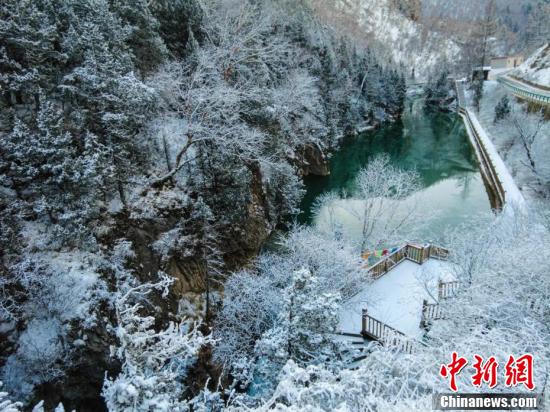 航拍甘南大峪溝雪景,銀裝素裹美如畫(huà)。(卓尼縣融媒體中心 供圖