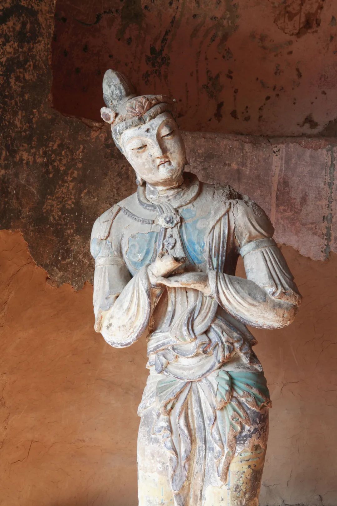 元明清時(shí)期由于政治中心東移,秦州地位下降,麥積山也步入開(kāi)窟造像的衰落期,無(wú)論是窟龕造像的規(guī)模,還是造像、壁畫(huà)的藝術(shù)水平都沒(méi)有太大建樹(shù),徹底轉(zhuǎn)變?yōu)橐惶幖兠耖g性宗教信仰活動(dòng)場(chǎng)所。元代造像主要以密宗為主,如35窟坐佛、48窟四臂觀音等;