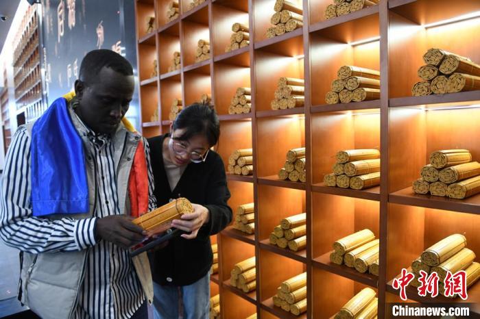圖為游客在大漢賦館內(nèi)體驗(yàn)閱讀漢簡(jiǎn)(復(fù)制品)?!〈魑牟?nbsp;攝