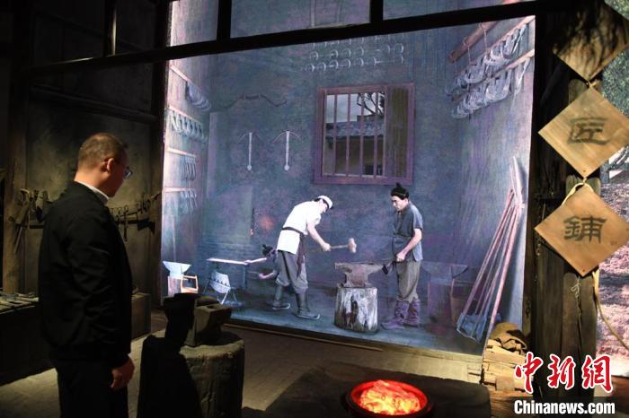 圖為游客在大漢賦館內(nèi)參觀(guān)鐵匠鋪。 戴文昌 攝