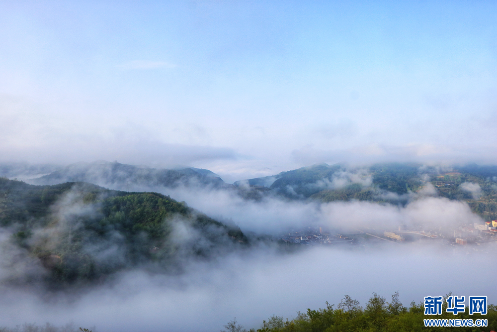 近日,甘肅省隴南市兩當縣上空云霧繚繞、煙波浩渺,縣城、山峰在霧海中若隱若現(xiàn),陽光從云霧間掠過,勾勒出一幅幅如夢如幻的美麗畫卷。新華網(wǎng)發(fā)(楊曉 攝)