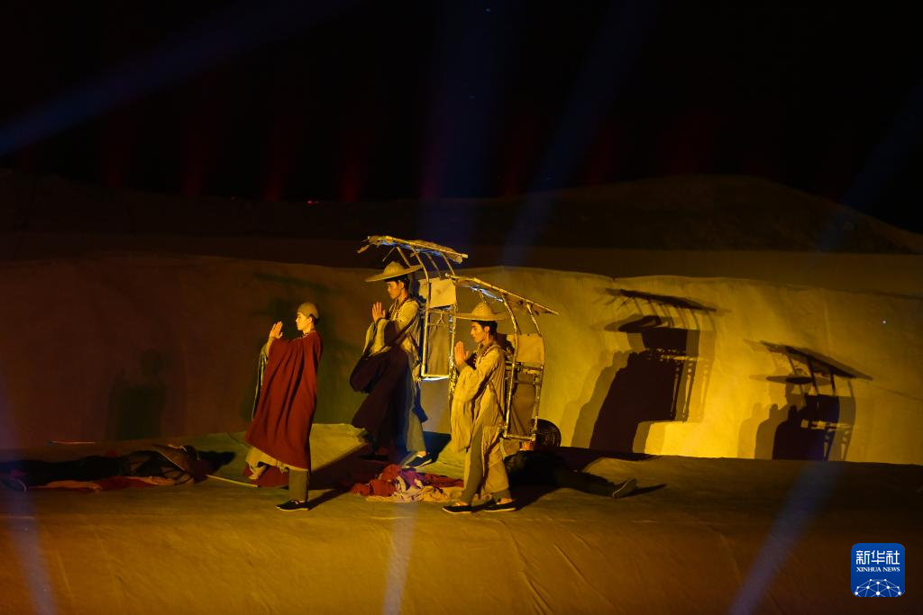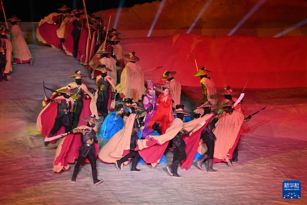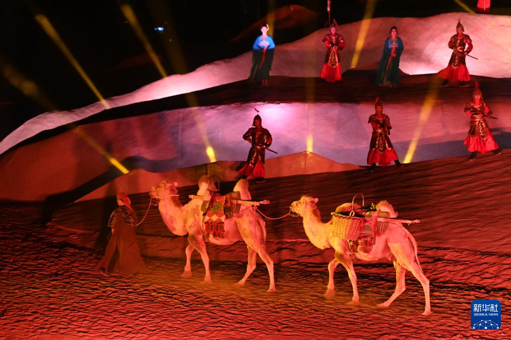 今年以來,脫胎于敦煌文化的洞窟沉浸式體驗(yàn)劇《樂動(dòng)敦煌》、室內(nèi)情景體驗(yàn)劇《又見敦煌》、沙漠實(shí)景演出《敦煌盛典》和中國(guó)殘疾人藝術(shù)團(tuán)情景音畫劇《千手千眼》四場(chǎng)劇目在絲路名城甘肅敦煌同步上演,劇目將敦煌歷史底蘊(yùn)、服飾文化、樂舞文化等生動(dòng)融合,為游客呈現(xiàn)出精彩絕倫的敦煌文化視覺盛宴,深受中外游客喜愛。截至8月10日,四大劇目今年已累計(jì)演出1175場(chǎng)次,觀看游客突破66萬人次。其中,《敦煌盛典》以敦煌鳴沙山月牙泉為背景,將沙漠景觀與現(xiàn)代舞美結(jié)合,將墻體燈光融入實(shí)景演出,講述了一段發(fā)生在古絲綢之路重鎮(zhèn)敦煌的愛情故事,展示了敦煌的歷史文化及人文風(fēng)貌。