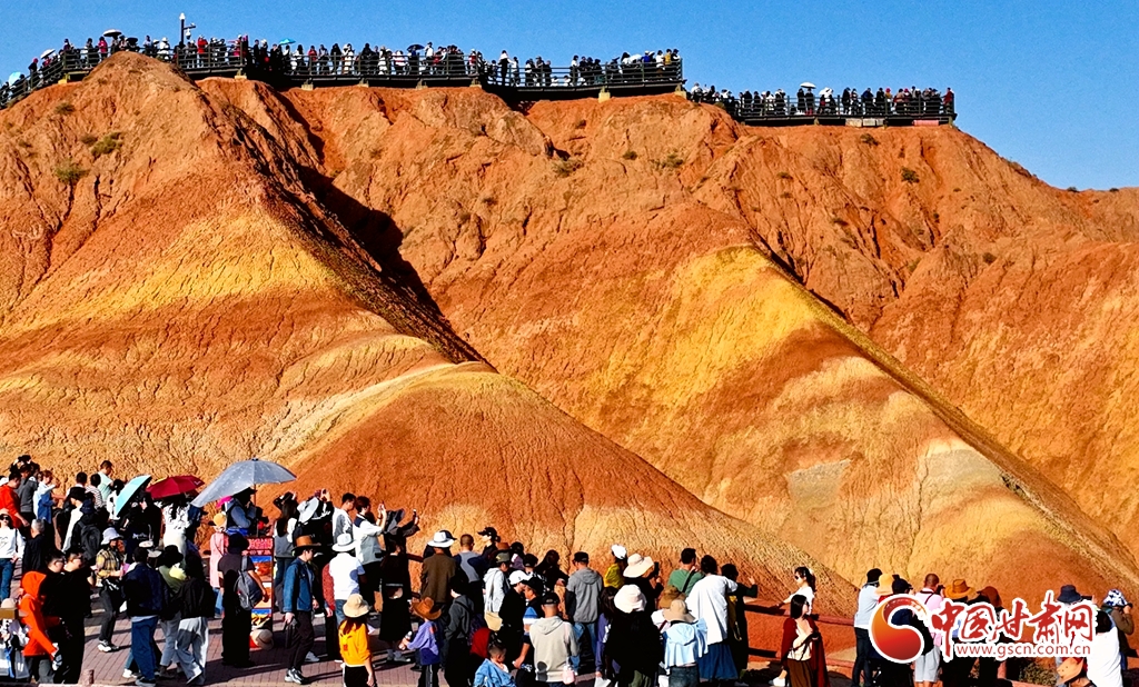 9月30日,甘肅張掖七彩丹霞景區(qū)內(nèi)人頭攢動(dòng),全國各地的游客紛至沓來,欣賞獨(dú)特的丹霞地貌,領(lǐng)略西北壯美景色。