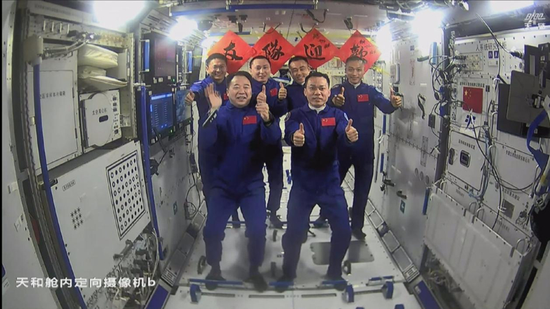 (2)三期并列:神舟17號與神舟16號兩個乘組會合,實現(xiàn)了我國三批航天員在空間站的首次大團圓。