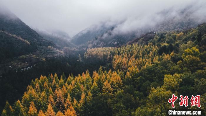 深秋,航拍位于蘭州市榆中縣的興隆山,景色如畫(huà)。金峯 攝</p>