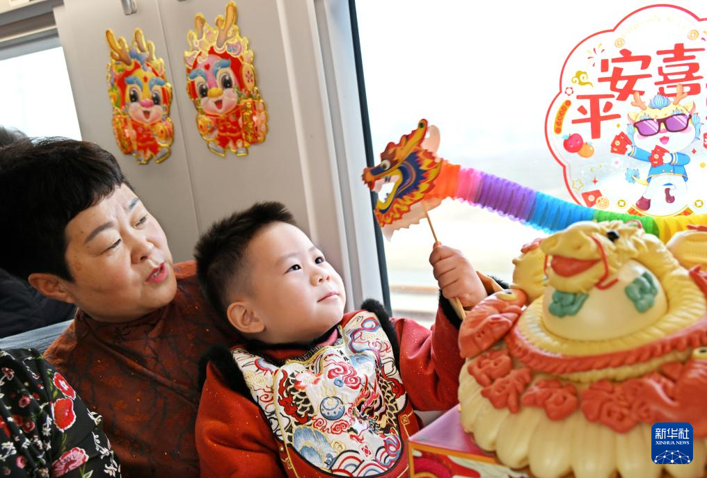 當(dāng)日,中國鐵路濟(jì)南局集團(tuán)有限公司青島客運段在齊魯環(huán)游線G6955次列車上開展“年俗非遺進(jìn)高鐵”活動,讓旅客在旅途中感受傳統(tǒng)文化的魅力,營造濃郁的節(jié)日氛圍。