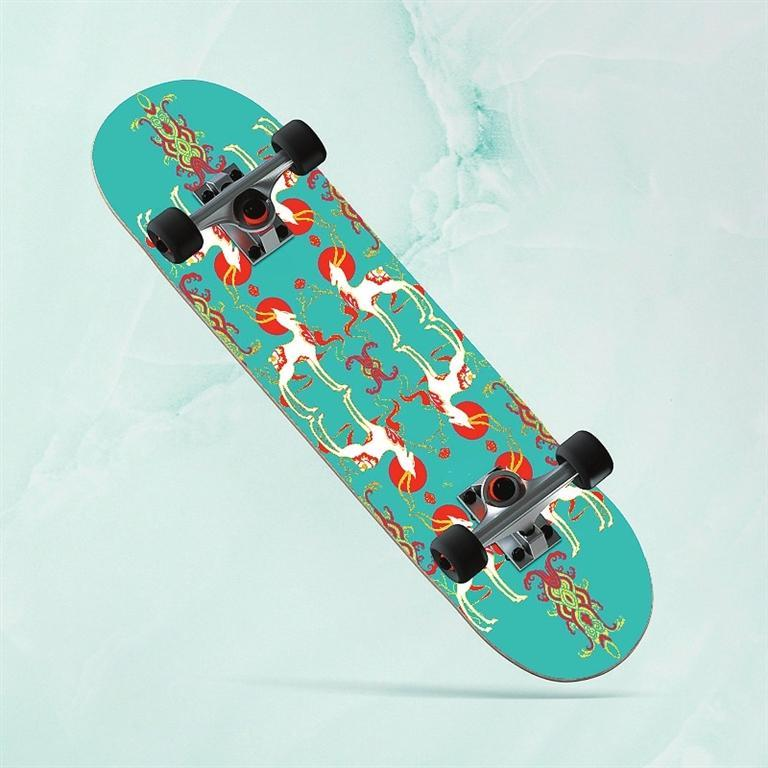 九色鹿滑板——以敦煌壁畫與極限運動相結(jié)合的設(shè)計,不僅讓傳統(tǒng)文化玩出了新花樣,同時掀起了一場以敦煌文化為代表的傳統(tǒng)文化消費潮。九色鹿滑板,既代表年輕人的活力和動力,又融合了神秘敦煌的藝術(shù)風格。以九色鹿為創(chuàng)意靈感的敦煌九色鹿系列聯(lián)名滑板,用扁平插畫風格進行再創(chuàng)作,用纖細柔美的線條凸顯九色鹿的優(yōu)美身姿,既保留傳統(tǒng)圖案的華麗精巧,也符合現(xiàn)代審美。