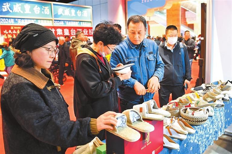 “沒想到一雙布鞋品質(zhì)能這么好,既能保留民族元素,又能兼顧時尚和實(shí)用,價格還不貴。”來自西安的游客劉雅楠拿起精致的麻鞋,摸了摸材質(zhì),仔細(xì)看了看上面的圖案說。聽到游客的詢問,工作人員笑盈盈地說:“這種鞋子是我們天水甘谷的非遺產(chǎn)品,每一雙鞋都是純手工制造,上面的圖案也是人工刺繡,每一雙都能體現(xiàn)天水藝術(shù)和甘谷文化的魅力。”