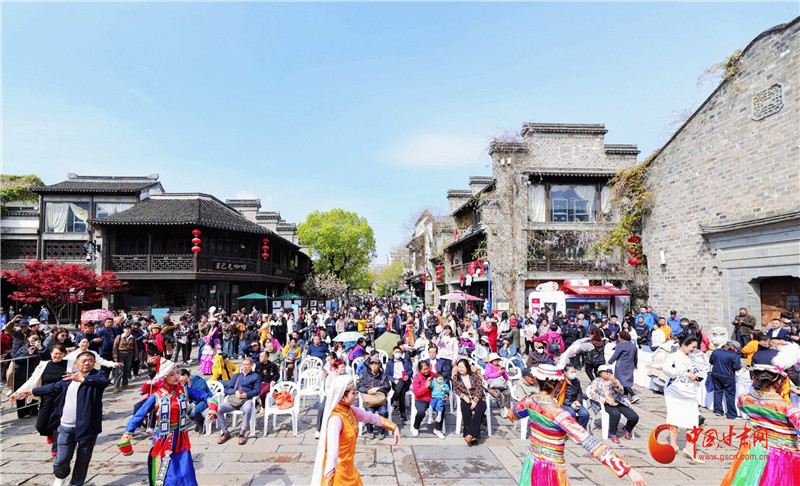 “快閃+路演”主題宣傳由甘肅民族風(fēng)舞蹈串燒的快閃活動(dòng)拉開序幕,西北特色民族舞蹈與江南風(fēng)情老街相遇,記憶里的南方與北方相融,這樣一幅情景相依又充滿矛盾的特殊“舞臺(tái)畫卷”,迅速吸引了景區(qū)大批游客駐足觀賞。