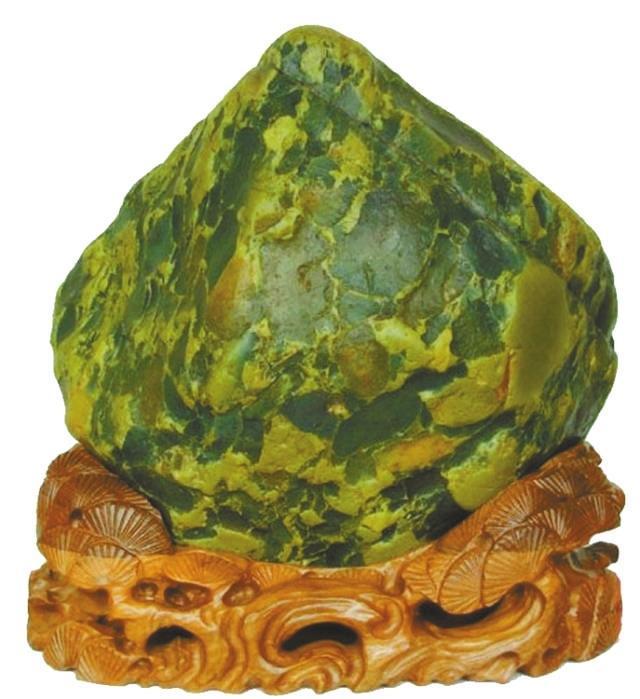 接著還需配置與主體相呼應的木質或石質底座,這時天然龐公玉已成為一件精致的藝術品。但這并不代表作品的創(chuàng)作已經完成,最后還需要篆刻一個含蓄且富有詩意的名稱或詩句在底座上,以達到虛實互補的效果。