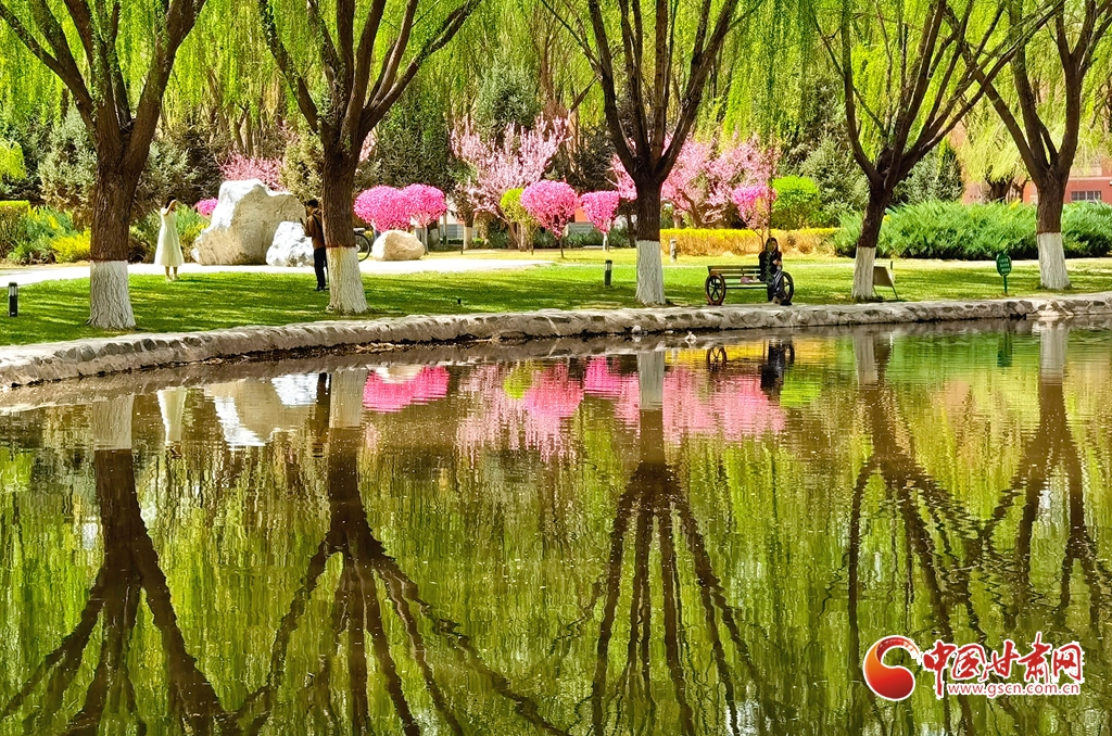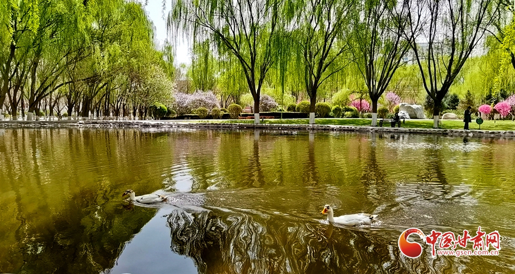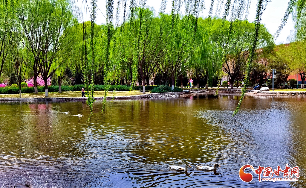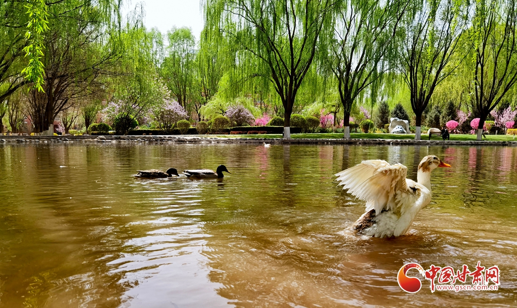 4月14日清晨,位于甘肅省張掖市河西學院的明理湖畔,春風拂柳,鴨子嬉戲,空氣中不時飄來花香縷縷,到處一派春意盎然的美景。