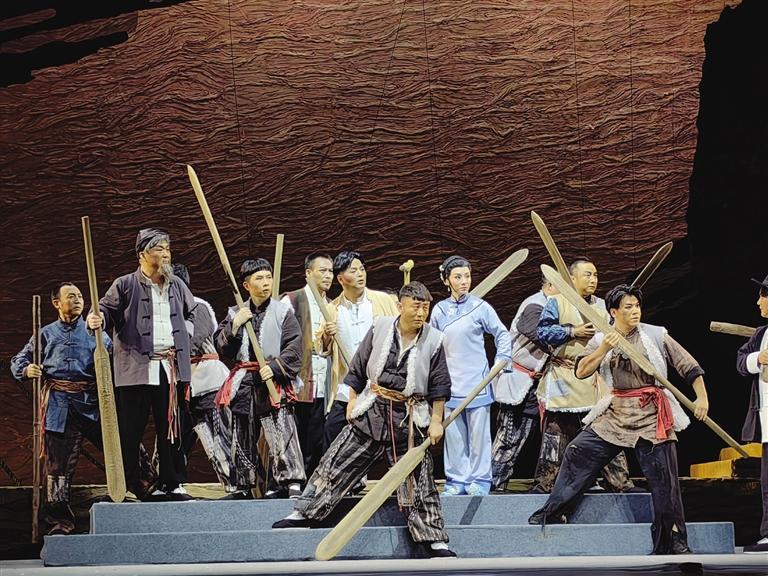 中國(guó)甘肅網(wǎng)5月21日訊 據(jù)蘭州晚報(bào)報(bào)道(記者 高宏梅 文/圖)酣暢淋漓的“花兒”唱出了黃河兒女的人間悲喜,韻味濃厚的“嘛簧”一唱眾幫,隴劇戲曲張力無(wú)限,“羊皮筏子賽軍艦”的熱血故事成就走心之作……5月19日晚,國(guó)家藝術(shù)基金資助項(xiàng)目原創(chuàng)隴劇《大河?xùn)|流》在黃河劇院成功首演,隴劇“梅花獎(jiǎng)”甘當(dāng)配角,“青春力量”首挑大梁,出新出彩的優(yōu)異表現(xiàn)贏得滿(mǎn)堂彩。