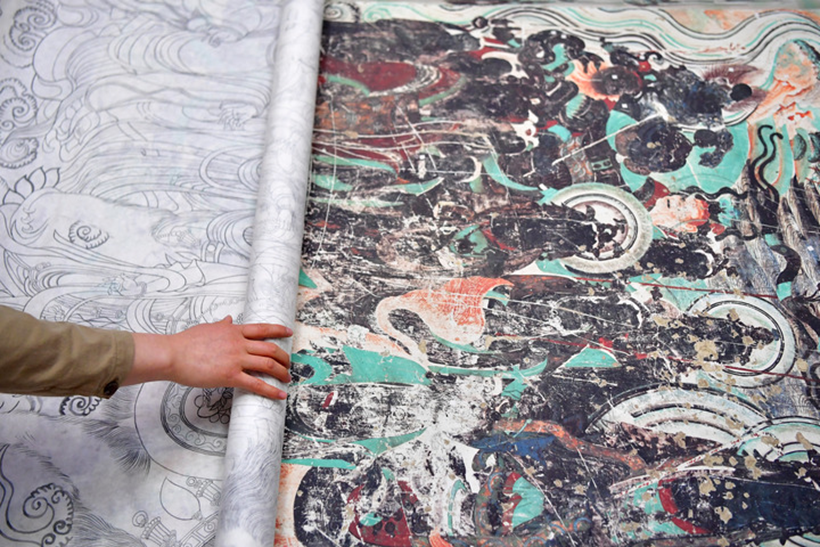 1989年年初,中國(guó)敦煌莫高窟465號(hào)窟內(nèi)的五處元代壁畫被盜。破案后,敦煌研究院立即組織有關(guān)專家將這些支離破碎的壁畫拼接粘合,以高超的技藝復(fù)原,然后按照?qǐng)D片檔案資料進(jìn)行描繪,使它們基本上恢復(fù)了被盜之前的本來面貌。