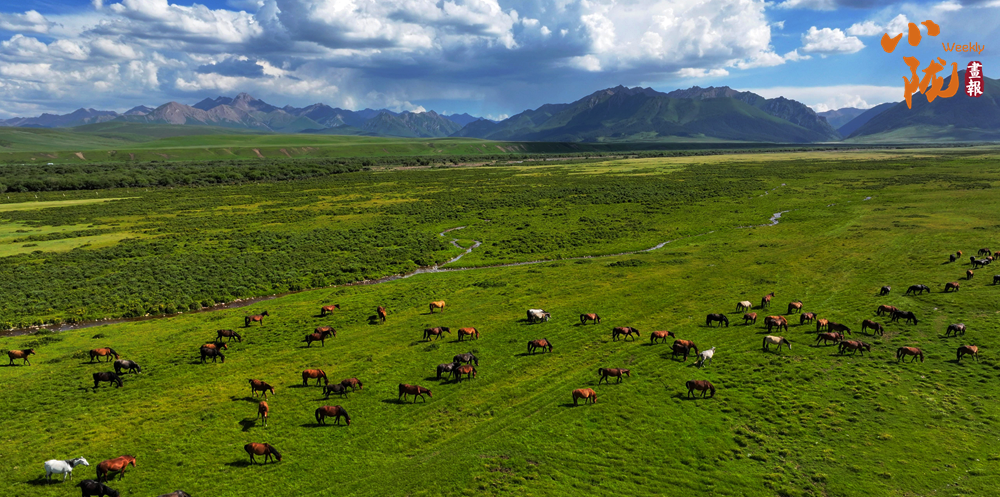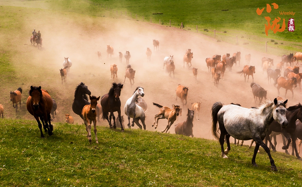 這里有比塞罕壩更壯觀的萬馬奔騰。藍(lán)天白云下,一匹匹雄健的駿馬在疾風(fēng)中奔馳,從一望無際的草場(chǎng)上呼嘯而過,長(zhǎng)鬃飛揚(yáng),浩浩蕩蕩。