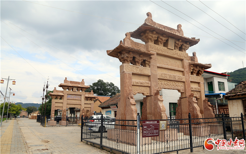 據(jù)介紹,三座牌坊都采用紅砂巖石料鑿磨鑲砌而成,均為四柱三間三層,斗拱歇山頂式,坊面上雕刻有屋舍、山水、人物、飛禽、走獸、花卉、樹木等,其造型優(yōu)美,結(jié)構(gòu)嚴(yán)整,刀法細(xì)膩,形象逼真。