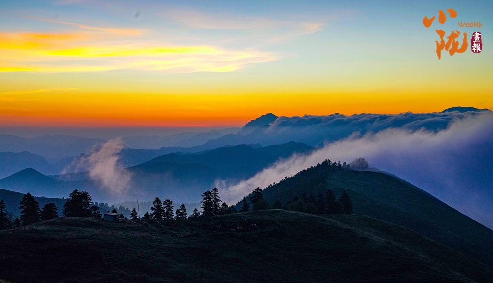 傍晚時分,天空變得絢爛多彩,晚霞映照白霧,起伏著山巒,坡地和浪漫;幾處白墻黛瓦的民居,升起炊香,滿目清爽之氣彌漫,用詩意繪就生態(tài)家園。