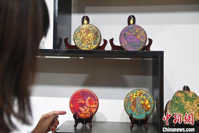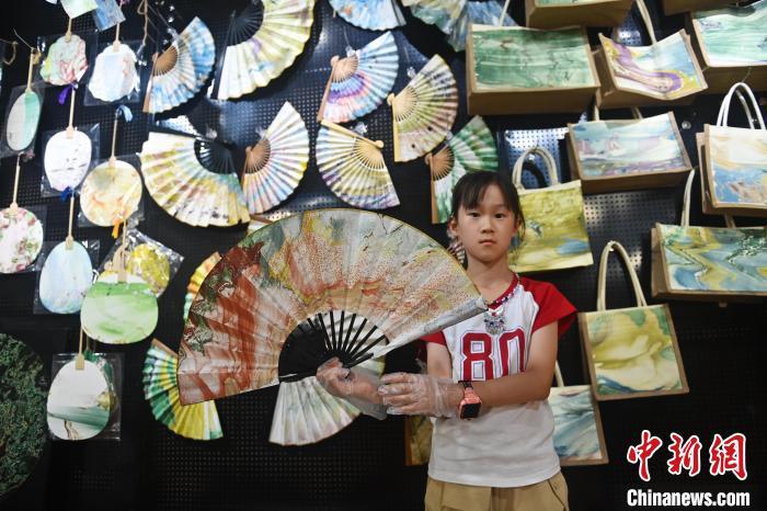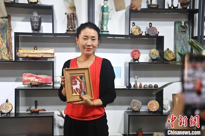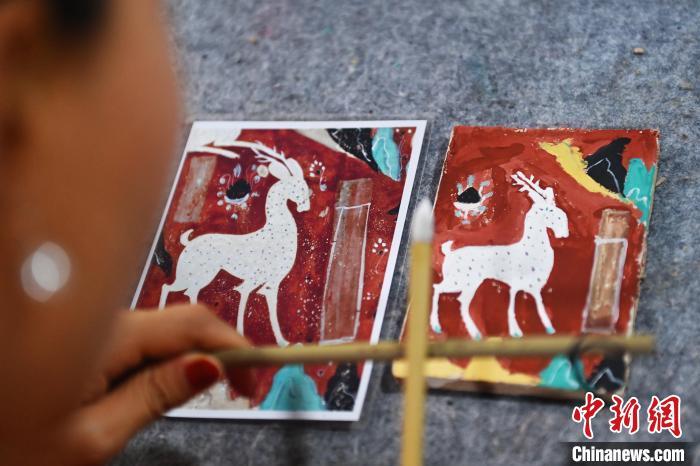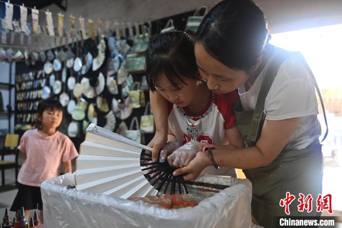 8月20日,甘肅敦煌莫高里工匠村內(nèi),學(xué)員展示研學(xué)成果。工匠村開設(shè)了泥板畫、彩繪、雕塑制作、剪紙、農(nóng)耕體驗等課程,現(xiàn)已發(fā)展成為一個集敦煌文化講堂、壁畫書法研習(xí)、美術(shù)設(shè)計、彩塑制作教學(xué)、篆刻藝術(shù)、傳統(tǒng)釀酒體驗、農(nóng)業(yè)產(chǎn)業(yè)發(fā)展等于一體的多功能實訓(xùn)基地。中新社記者 李亞龍 攝
