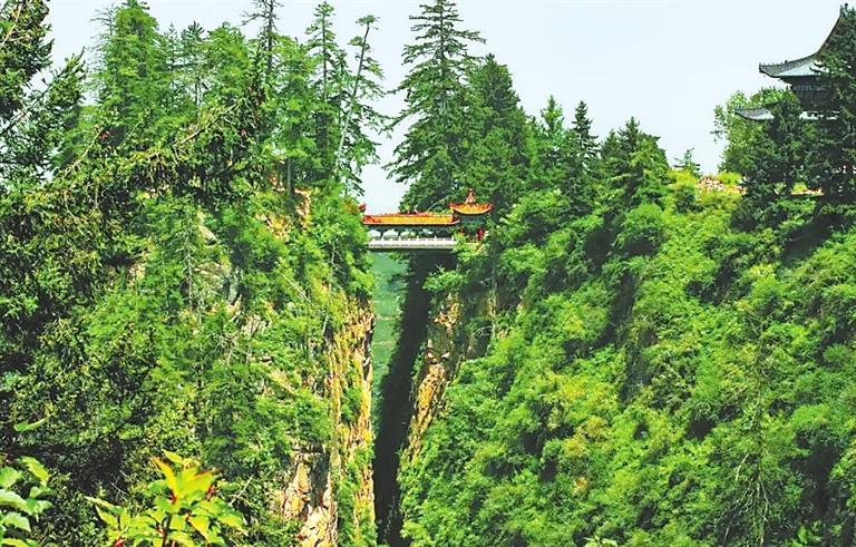 其實(shí),石門山系小隴山林區(qū)的余脈,蘊(yùn)藏著得天獨(dú)厚的植物資源,有我國南北的各種野生植物百余種,其中有很多還是園林中的珍品。據(jù)景區(qū)資料得知,石門山由北峰、麒麟峰、南峰構(gòu)成。北峰建有無量殿、靈官殿、文昌宮、三清殿、鐘樓。麒麟峰建有圣母宮、三肖殿、三仙庵。南峰峰頂建有玉皇閣和三官殿。這些殿宇大多為明清重修,依山就勢(shì),錯(cuò)落有致,風(fēng)格纖巧,玲瓏俊秀,最小的殿宇僅有5至6平方米,在石門山的萬綠叢中時(shí)隱時(shí)現(xiàn),猶如一幅濃淡相宜,層次分明的水墨畫,形成了石門山特有的風(fēng)韻。