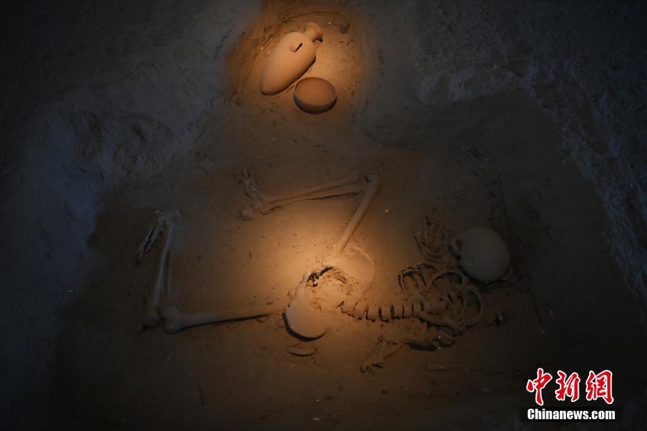 ?。保霸拢玻踩眨玻埃玻辞嗄隄h學家研修計劃甘肅班團隊22個國家的青年漢學家,走進甘肅省天水市秦安縣大地灣遺址參觀并進行專題研修。大地灣遺址是新石器時代大型聚落遺址,出土了中國乃至世界上最早的彩陶文化、最早的文字符號、種植生產了中國第一批糧食品種黍、出現了最早的宮殿式建筑、發(fā)明了世界最早的水泥地面、創(chuàng)造了最早的繪畫作品——F411地畫。圖為大地灣博物館墓葬701。中新社記者 李亞龍 攝