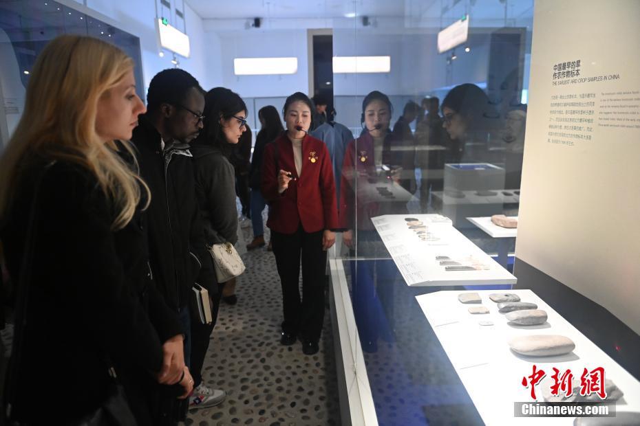 ?。保霸拢玻踩眨玻埃玻辞嗄隄h學家研修計劃甘肅班團隊22個國家的青年漢學家,走進甘肅省天水市秦安縣大地灣遺址參觀并進行專題研修。大地灣遺址是新石器時代大型聚落遺址,出土了中國乃至世界上最早的彩陶文化、最早的文字符號、種植生產了中國第一批糧食品種黍、出現了最早的宮殿式建筑、發(fā)明了世界最早的水泥地面、創(chuàng)造了最早的繪畫作品——F411地畫。圖為22國青年漢學家參觀大地灣博物館。中新社記者 李亞龍 攝