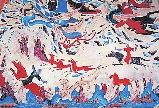 在莫高窟第249窟壁畫中有一幅“行獵圖”:畫面上都是些體型巨大的動(dòng)物,有體態(tài)矯健的猛虎、疾馳俊逸的鹿群、整裝待發(fā)的獅子等,有在奔馳的駿馬上拈弓搭箭窮追不舍的獵人,還有在飛奔的駿馬上淡定轉(zhuǎn)身從容射虎的獵人。整個(gè)畫面既緊張又美好,使人不由得對(duì)畫師精湛的技藝心悅誠(chéng)服。唐代詩(shī)人王維在詩(shī)作《觀獵》中寫道:“風(fēng)勁角弓鳴,將軍獵渭城。草枯鷹眼疾,雪盡馬蹄輕。忽過新豐市,還歸細(xì)柳營(yíng)。回看射雕處,千里暮云平。”意思是說將軍的獵騎,飛馳在渭城的近郊。風(fēng)中傳來呼嘯的弦聲。已枯的野草,擋不住尖銳敏捷的鷹眼,積雪后飛馳的駿馬馬蹄會(huì)愈加輕盈。據(jù)文獻(xiàn)記載,唐宋時(shí)期人們打獵時(shí)多有一種“西北望,射天狼”的豪情!在莫高窟第85窟壁畫中還有一幅“行獵圖”就形象地反映了唐人狩獵的情景:畫面上的四個(gè)健碩獵人正在整裝出獵,他們著裝統(tǒng)一:頭戴幞頭,身穿缺胯衫,足蹬半腰靴。打獵的裝備也很不同:有人胳臂上架鷹、有人單手牽犬、有人持弓挎箭囊,甚至還有一人手持利斧。