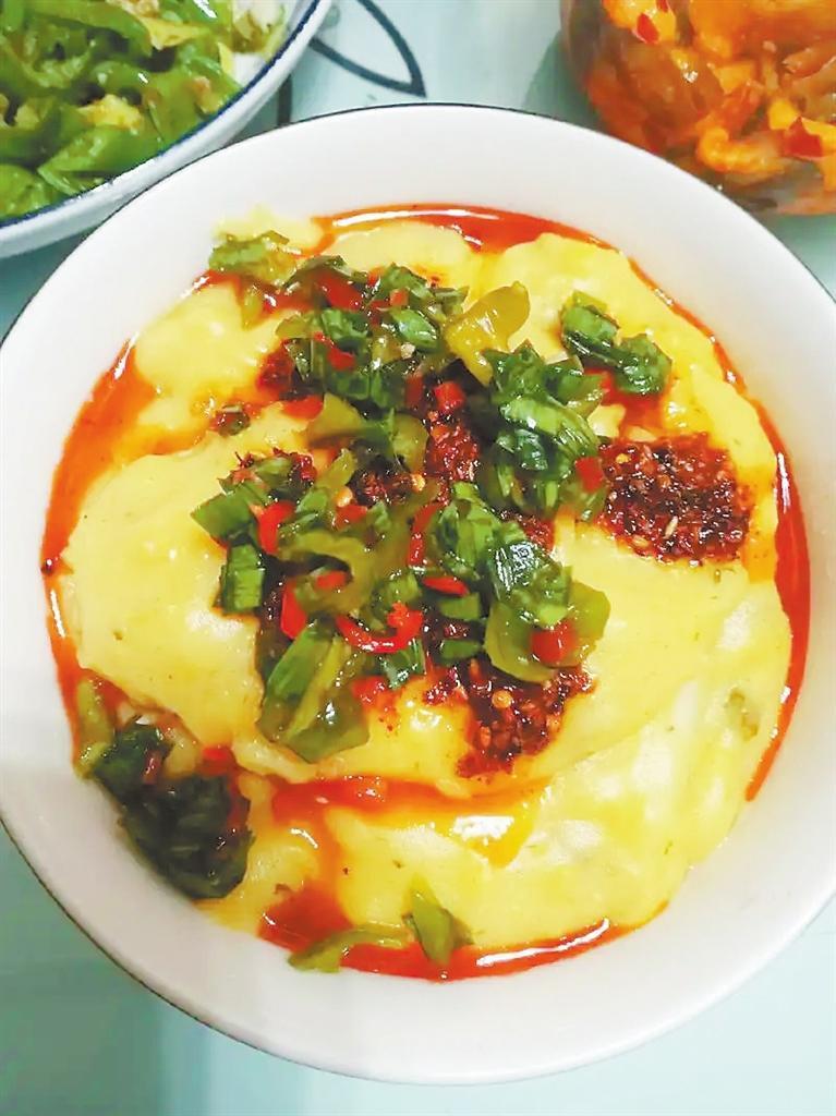 我們一人一碗,端著吃,兩三口馓飯,一筷酸菜。有段時(shí)間,我喜歡馓飯里倒醋吃,也酸,撒點(diǎn)鹽,再來點(diǎn)辣椒油,就香了。剛開始覺得是創(chuàng)新,很得意,母親批評了幾次,遂作罷了。吃馓飯,有講究,左手端碗,碗要不停旋轉(zhuǎn),要不燙手,端不住,邊轉(zhuǎn)邊用筷子夾,夾一口,吹一下,方可進(jìn)嘴,要不燒嘴。馓飯,我們也叫“燒心飯”,夾不好,吹不涼,一口下肚,如火炭,直墜心窩,燒得人幾欲斷氣。當(dāng)然,也不至于如此可怕。只要不囫圇吞棗。一筷馓飯,入口進(jìn)肚,頓覺熱氣穿腸而過,渾身溫暖,舒服之意自不必言說。