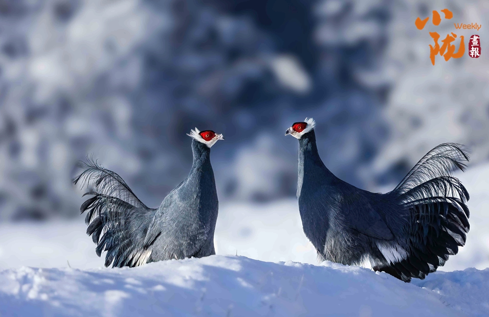 珍貴稀有的國家二級重點保護動物藍馬雞,體型較大,通體藍灰色,頸項和肩部顏色更深,閃爍著金屬般的輝亮。其尾羽特別長,由灰藍色漸變?yōu)榘底纤{色,并渲染著金屬綠和金屬紫藍色,24枚尾羽中,中央一對尾羽特別長,富有彈性,彎曲成一個美麗的弧形,高高地翹在其他尾羽之上,披散下垂如馬尾,因而得名。此外,藍馬雞的頭側(cè)緋紅,耳羽簇白色并突出于頸部頂上,為其增添了獨特的魅力。