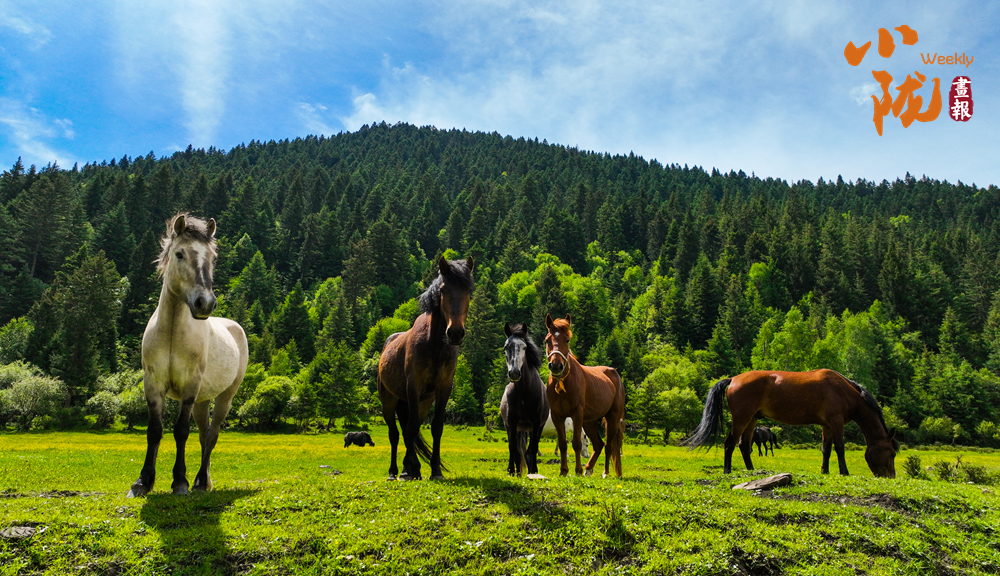 云朵潔白如雪,碧綠的草甸上繁花似錦,散發(fā)著淡淡的清香,引得蜜蜂和蝴蝶翩翩起舞。成群的牦牛與駿馬悠然自得地啃食著青草,牧民的帳篷點(diǎn)綴其間,炊煙裊裊升起,勾勒出一幅寧?kù)o祥和的牧居生活圖景。