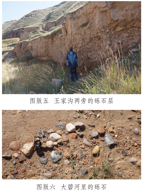 玉石山南麓有一條自東向西流過峽口鎮(zhèn)注入洮河的河——大碧河,《狄道州志》里稱為“打璧河” [12]。玉石山和山下大碧河之間有幾條溝,這些溝是上玉石山的必經(jīng)道路,也是雨水夾帶山上的石頭注入大碧河的通道。在甘肅臨洮馬家窯文化研究院李家功的引領(lǐng)下,我們對大碧河中下游和通往玉石山的三條支溝進(jìn)行了較系統(tǒng)的調(diào)查,調(diào)查方法是在訪問當(dāng)?shù)赜嘘P(guān)人員的基礎(chǔ)上,進(jìn)行野外實地考察。大碧河連接玉石山的支溝主要有三條:第一條大溝是王家溝,是玉石山和峽口鎮(zhèn)之間的通道,大雨過后附近的村民往往會在這條溝里撿到玉石。在王家溝靠近玉石山的茨泉子村,十多戶村民都拿出自己在溝中揀到的十余件山流水玉料(圖版四)供我們觀察、檢測。玉料大小不一,大者長軸約30厘米,多呈次圓狀,均有玉皮,內(nèi)部質(zhì)地多細(xì)膩,肉眼鑒定和XRF檢測結(jié)果表明,玉石主要包括黃綠色(含草花)透閃石玉、透輝透閃石玉及透閃石大理巖,另外還有螢石料。王家溝下游匯入大碧河入口段,發(fā)育三級階地,前人使用大型機械開挖二、三級階地礫石層(圖版五),據(jù)說在其中找到較多玉料,現(xiàn)政府已叫停。在階地礫石層中我們也撿到淺黃綠色透輝透閃石大理巖及半玉化的大理巖礫石,這些礫石是玉石山玉礦的近礦圍巖。王家溝匯入大碧河,因此大碧河中也可以撿到從王家溝滾落的玉石山上的玉石和其它巖石。我們在大碧河峽口鎮(zhèn)段揀到較多直徑約3~5厘米來自玉石山的透閃石大理巖,巖石磨圓度高,成球狀或橢球狀,質(zhì)地較細(xì)膩。據(jù)當(dāng)?shù)厝酥v,也有人在大碧河峽口鎮(zhèn)段撿到過小塊的玉石;第二條溝是小溝——漆家溝,位于王家溝西面,雖位于玉石山正面,但鮮有聽到在溝里撿到玉石的消息;第三條溝是王家溝東面的石景峽,距離玉石山相對較遠(yuǎn),其溝腦是玉石山的東延部分?!兜业乐葜尽防镙d“打璧河,在州北三十里,源出石井峽,即打璧谷” [13]。這里的“石井峽”可能就是現(xiàn)在所說的“石景峽”,峽中腰有水冒出。但現(xiàn)在的大碧河不源于石景峽,而是源于洮河和渭河的分水嶺。石景峽雖可能是史籍上的打璧谷,且在峽里也撿到了透閃石大理巖礫石,但沒有發(fā)現(xiàn)玉石器和玉料。