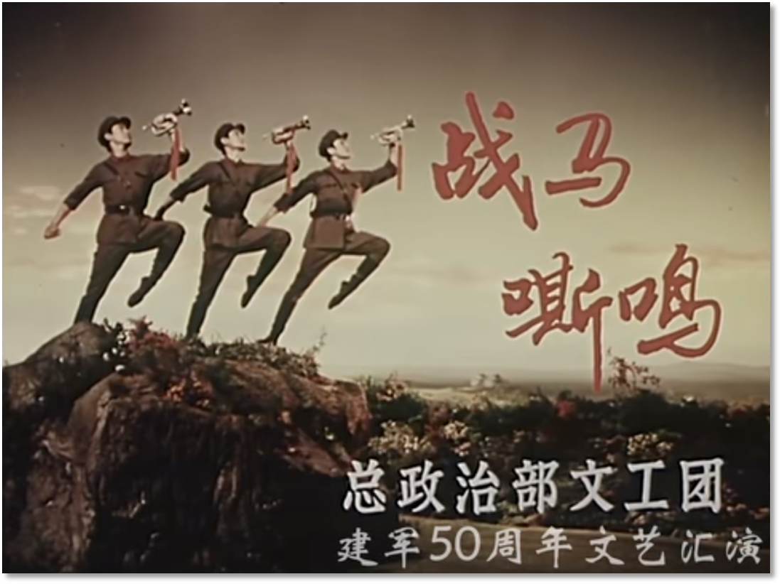 有趣的是,膠片并非被動記錄,它悄然行使著選擇的權(quán)力——它決定了后世的人們將以何種視角、何種景別來銘記《戰(zhàn)馬嘶鳴》。在鏡頭中定格下來的膠片拷貝,就此定義了經(jīng)典的面貌。從舞臺到膠片,作品完成了一次關(guān)鍵的媒介化轉(zhuǎn)身,從一場限時演出,變身為一個時代的文化符號。這使軍藝精神在沒有數(shù)字媒體的時代,得以廣泛流傳和保存。