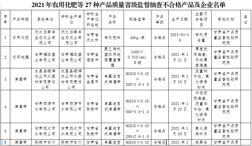 2021年農(nóng)用化肥等27種產(chǎn)品質量省級監(jiān)督抽查不合格產(chǎn)品及企業(yè)名單(點擊下載)